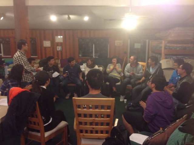 周五下午,第一批弟兄姊妹便先行上山,提前为后到的弟兄姊妹们准备晚饭。到晚上六点左 右,圣徒们陆续抵达营地。晚饭过后,将近40位围坐在一起享受诗歌,其间也进行了自我介 绍,让原本不熟悉的圣徒之间多了一些了解。其实此行并非只有来自UCI校园的圣徒,还有几 位来自USC的圣徒也与我们相调在一起,享受身体的一!负责弟兄们为这次相调准备了四篇信息,分别是“基督是道路真理和生命”、“基督是复活和 生命”、“基督是生命的粮和生命的光”以及“基督是‘我是’”。在分组研读与交通之后,每 个小组都派代表分享所摸着的丰富,有的小组甚至有福音朋友站起来分享自己的感受,阿利路 亚!
