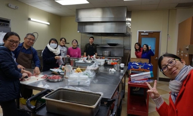 每天的午餐晚餐都是由弟兄姊妹们轮流预备服事。从台湾油饭到墨西哥卷饼、北方地三鲜,从烤羊排到烤鸡腿、烤猪排,弟兄姊妹们不仅里面享受丰富的基督,也在爱里彼此服事。