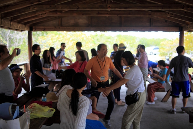五奌半返回岸上,看到留下的弟兄姊妹还末散去,在凉亭内分享见证!其中英语弟兄Jack对一对需要牧养的夫妇特别照顾,从他在越战中的经历,到台湾召会生活的访问所见所得,娓娓道来,鼓励弟兄要建立和主亲密的亇人交通!