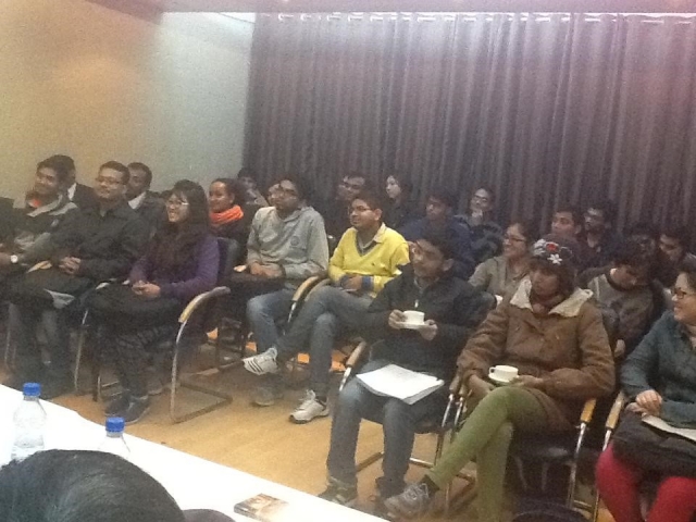 上午,学者福音的弟兄们即在所住旅馆租下的一间会议室有一个多小时的屈膝祷告。特别为主在德里的行动,校园的福音。祷告后,三位弟兄前去与IIT的教授会面,其他本地的服事者去校园邀请人,留下的则在旅馆等候与学生座谈。这次弟兄们安排了两场座谈,一场下午2点到4点,一场6点到8点。