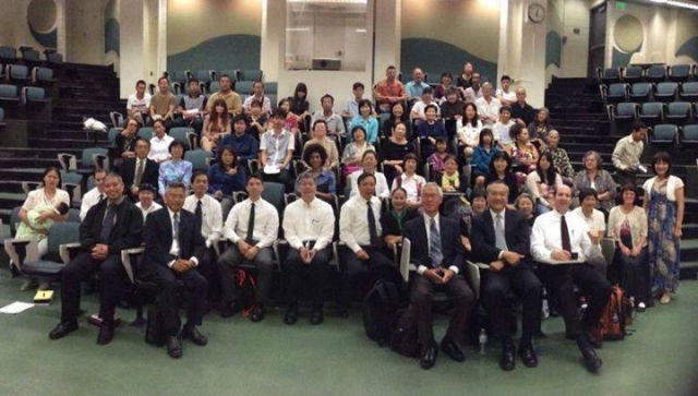 晚上七点,在夏威夷大学马诺阿(Manoa)校园的礼堂开始了第一堂特会,总题为:恢复祭司的职分,共约有一百一十位圣徒参加。夏威夷群岛有两个召会——檀香山召会和位于大岛的希洛(Hilo)召会,连同分散在其他岛屿的圣徒,共有140多位,英语圣徒和华语圣徒各占一半。岛屿之间的交通工具都是飞机。为了接待付代价从外岛来的圣徒(其中还有五位来自希洛岛的苏俄裔年轻人),檀香山召会圣徒连续两个晚上在礼堂外面摆上丰富可口的晚餐敞开供应。众圣徒灵魂体都得饱足。