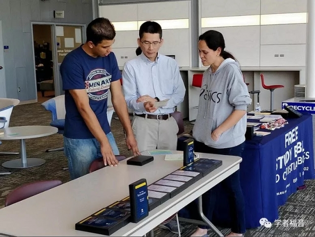 20日周四,我们来到Univ. of Nebraska- Omaha校园,摆UNO Christian社团的桌子,接触学生,并邀请来参加晚上的福音聚会。这个校园更大,人多,但也更匆忙,大多不愿意停留。但也有寻求的,主动来打招呼,给我们加油打气。