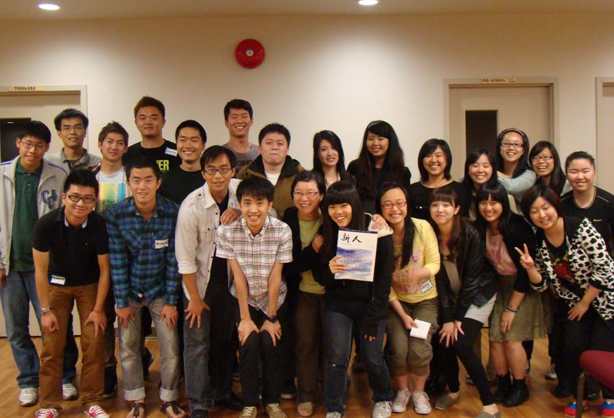 延续这两周活动之后,即从九月学校开学迄今,便将所有服事的青年圣徒编组起来,一方面从校园社团角度分配个人职务,如社长、副社长、文书组、报名组、网路组等共十组;另一方面则从服事照顾新同学们的角度,建立起活力棑的服事架构,因而凡是有挂着同学的算为联络人,共计十五位;凡一直参与配搭在周四聚会里的其他圣徒为提醒人,共计五位。