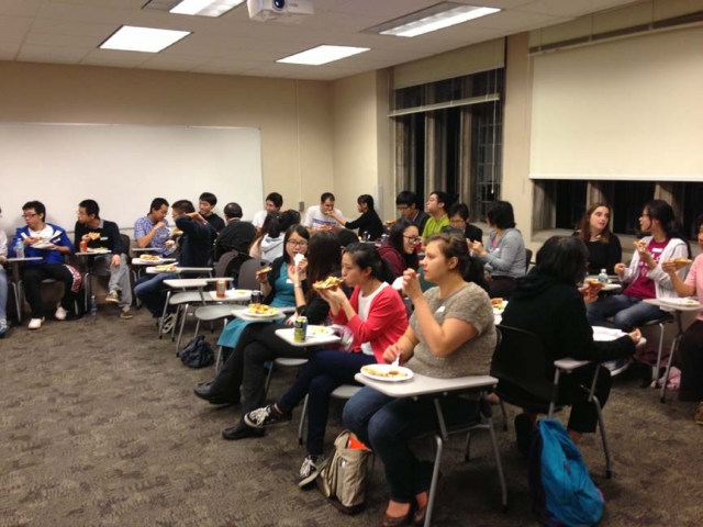 到达学校后,圣徒们先在校园内寻找话语学生并分发邀请卡。三点钟福音聚会在学校Manchester Hall的教室中正式开始。有12位福音朋友和大约20位圣徒参加了此次福音聚会。其中大部分是和Jane姊妹同实验室的同学。聚会的一开始,圣徒和福音朋友享受了两首诗歌《清晨的日光》以及《我已得到真正自由》。几位弟兄们从有神无神和人生的奥秘入手,告诉福音朋友我们人有三部分,体、魂和灵。而灵有良心、直觉和与神交通的功用。人的被造是为了乘装神,从而能够彰显神。然而,人堕落了,这时候就需要神的救赎,解决人罪的问题,并赐下赐生命灵。我们要信神,就是要相信神所做成的一切,并且简简单单的接受。通过呼求主名,我们就可以接受这位是灵的神。