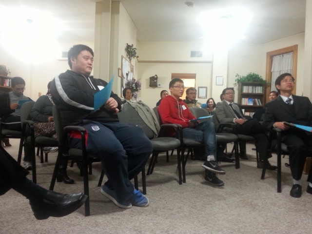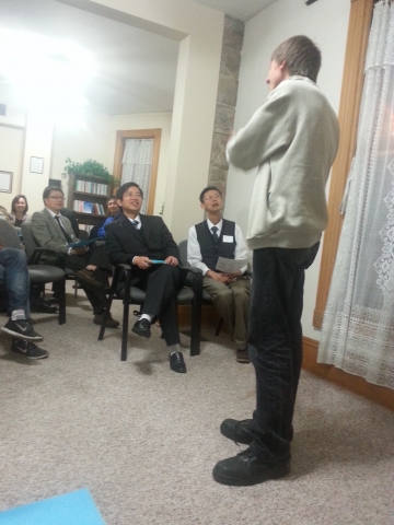 当天下午,芝加哥的三位弟兄们也驱车来到,我们就与Milwaukee召会配搭,在会所一同举办了秋季学期的福音真理座谈会。共有11位福音朋友到来,包括来自Univ. of Wisconsin以及Blood Research Institute的学生、访问学者,以及社区的福音朋友。当地召会的崔弟兄作主持人,在学校作教职的一位姊妹一同配搭作讲员。
