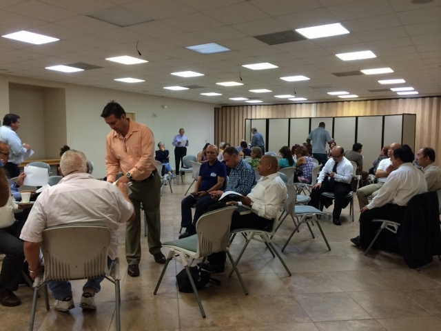 9/19/15周六傍晚,大约50多位西班牙语圣徒和几位英文、华语圣徒聚集在Miami召会的会所里,其中10位是受邀第一次前来的弟兄姊妹。这是西语圣徒多年来所恢复的第一场福音聚会。这10位受邀者大多来自南美,基本都有宗教背景,他们所缺的就是真理,对主缺少主观的认识和享受。8、9位西语圣徒纷纷起来见证自己如何认识主,如何进入召会,享受召会生活,从宗教的虚空转向活神,并借着职事的说话更多地认识真理,认识神的心意。