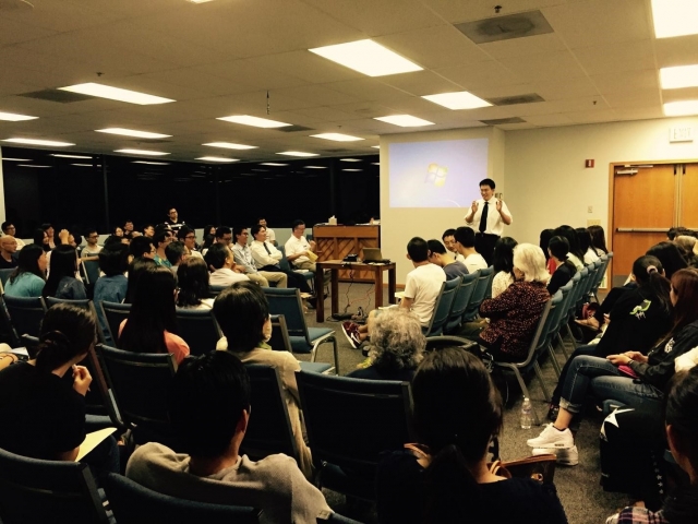 为了在新的学年得着并带领新人,实行四维空间的召会生活,2015年9月19日,Riverside 与San Diego 两地召会配搭,在San Diego召会会所举办学前福音聚会,以书中之书——圣经为主题。盼望借着这个聚会带人得救,并和同学们建立生机的活力读经小组。
