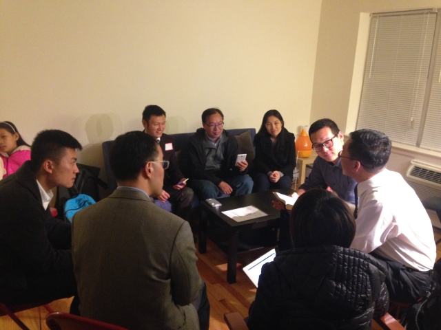 感谢主!感谢众肢体的祷告和配搭服事!10月27日傍晚6点半,在耶鲁大学 17 Hill House Ave 的一间教室里,Woodbridge的弟兄姊妹和在耶鲁校园的众圣徒,与大家邀请而来的福音朋友举行了一场福音问答。在简单的晚餐后,Mike, Steven, Jung, Mark弟兄对福音朋友的提问做出了回答。尤其是对人的灵魂体三部分的被造和功用作出了解释。感谢主,弟兄们配搭如一人!对每一个问题的回答,四张口里的话连贯合一,都是出于一灵,实实在在把主供应了出来。 Steven弟兄对耶鲁大学的校园福音很有负担,此次专门提前从加州赶来服事。Newington召会的Mark弟兄也是在值夜班前夕,特别圣别出时间来为主说话。弟兄们为主作工,被主加力,在福音朋友面前作了很好的见证。