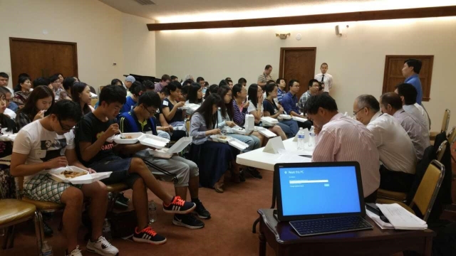 当天的聚会共有43位新人出席。傍晚的聚会开始前,在哥伦布市召会的白人弟兄们用英语欢迎了前来参加聚会的朋友们,为要使前来的朋友们看到,哥伦布市的召会并非是以任何语种、任何国籍为分别标准的组织,而是基督的身体在哥伦布市实际的彰显。