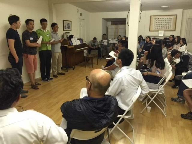 第一部分,我们通过诗歌“欢迎你”和“信的故事”开始,然后简单介绍了UCLA和SMC的学生基督徒的活动,让福音朋友开始对我们有了解。接下来我们做了击鼓传花的游戏。游戏中的问题是事先准备好的,有些为了活跃聚会的气氛,有些为了引起对求学和人生的疑问。游戏后,我们分组由弟兄姊妹带福音朋友读信息《打算》并有简单的分享。感谢主,多数福音朋友对我们很敞开,在小组讨论中或提问题或分享感悟,大家很好得调在一起。组内分享后是晚餐时间,大家借助这个时间有了充分的休息和互动。