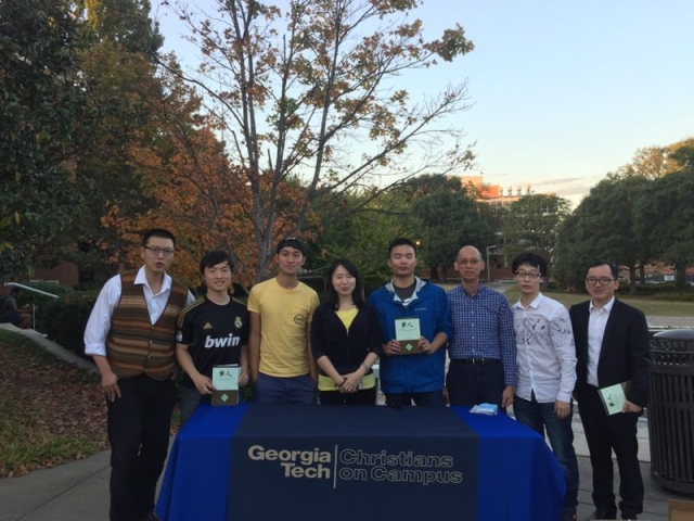 11月5日下午5点左右,同学们像往常一样在GT校园开始摆桌子,接触并邀请同学们参加晚上的小排福音聚会。这次摆桌子共有10位弟兄姊妹一同配搭,我们两两配搭出去,在短短的一个小时内,接触了大约20位的福音朋友,可惜没有人来参加当天晚上的福音聚会。