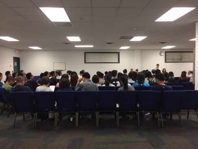 继九月九日之后,我们所接触的福音朋友都在各个小排里被弟兄姊妹们持续照顾。福音组的弟兄们每周四晚来在一起祷告交通,预备十月七日的福音收割聚会。经过交通后,此次福音聚会决定以真理座谈和福音短讲的方式进行。弟兄们决定邀请在纽约校园服事的弟兄来给学生们短讲活讲,借此机会,纽约市的学校里圣徒们和福音朋友过来和我们相调。所以这次福音聚会就成了一个相调福音聚会,并且弟兄们和纽约的弟兄有多次的电话祷告交通,很被纽约的弟兄姊妹们福音的灵所激励。
