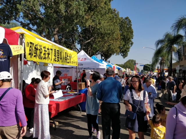 2018年2月3日至4日,在南加州蒙特利公园市的年节展上,学者福音和加州西谷众召会配搭,在街头放胆传扬福音;弟兄姊妹互相配搭,接触游人,邀请福音朋友参加福音聚会。