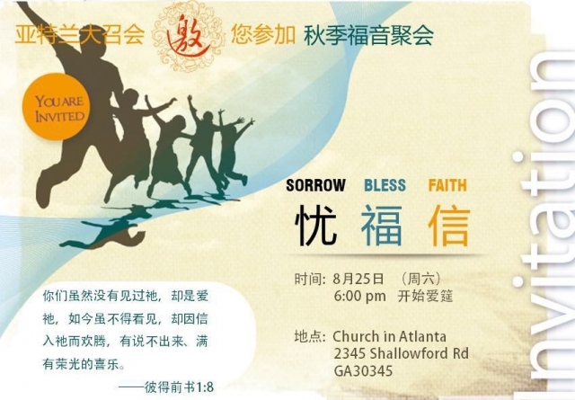 亚特兰大福音周从8月20日开始,8月25日有收割福音聚会。