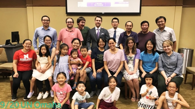 9月20日,周四,我们来到Univ. of Nebraska- Omaha校园,摆UNO Christian社团的桌子,接触学生,并邀请来参加晚上的福音聚会。这个校园更大,人多,但也更匆忙,大多不愿意停留。但也有寻求的,主动来打招呼,给我们加油打气。