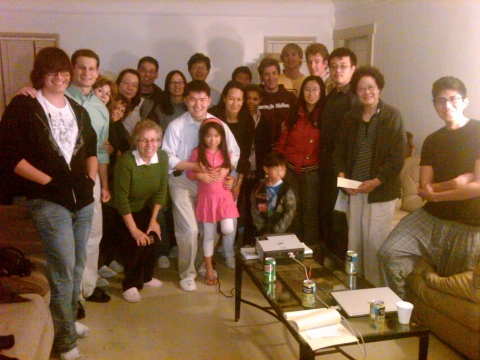 11/21日周一晚上,位于CalTech对面的弟兄之家开家,姊妹们花一天时间作了香喷喷的火鸡大餐。晚上,有7位CalTech的研究生(4位华语、3位英语(都是美国白人))来到家中,还有一位是USC的研究生。加上弟兄姊妹和社区的新人(2位),总共27位(含10位新人,及2位儿童)。一位白人学生说,“This is the most delicious Turkey I ever had.”
