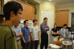 二〇一一年九月九日周五晚在克里蒙特学院联盟附近一个圣徒打开的家中举办了迎新聚会。加州Ontario召会的华语圣徒预备了丰盛的爱筵,学生圣徒们邀约新生前来参加。与会学生共15位,服事者8位(其中5位为安那翰全时间训练的学员,此次福音聚会是华语、英语共同配搭传扬)。学生中有9为新人,6位是福音朋友。学生有华语有英语,大多是本科生(Undergraduate),聚会用英语,为着传扬万邦的福音。