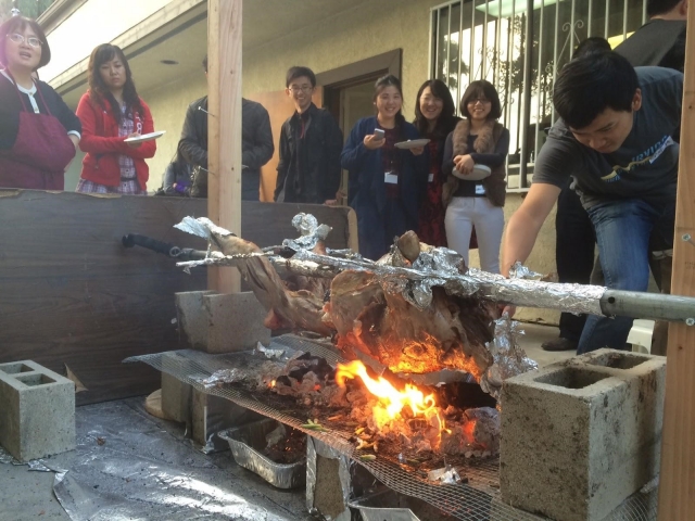 下午两点,弟兄们开始烤全羊,这是西岸的第一次。通过烤全羊,大家得着一个直观的感受:经历基督作逾越节的羊羔,并且基督就是整个逾越节。 晚餐之前是第三堂的读经与追求:第11-15章。 晚上,在享受诗歌之后,我们请各校园的弟兄姊妹,自由分享这学期的福音行动及蒙恩见证。圣徒们都非常积极踊跃,一个接一个的分享。鲜活的见证,真实的经历,彼此互相地激励着在座的每一位同学。最后弟兄有关于晨兴的生活、团体晨兴的操练,及传福音牧养人等加强的话。