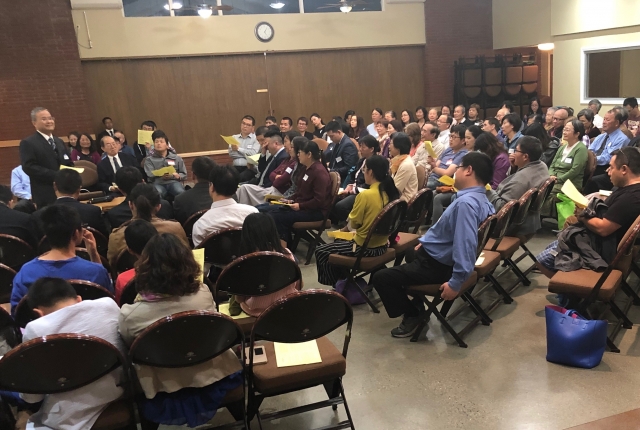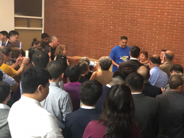 在阳光灿烂的午后,众圣徒扶老携幼地带着福音朋友,喜喜乐乐地赴会。一进到会所的停车场,就看到幅“一个新人”的美丽图画。笑容可掬的招待是西语年长圣徒和西装笔挺的华语青少年弟兄。其他各样的服事(报到、儿童服事、受浸等)也都是华语、英语、西语圣徒一起配搭,真正做到人人尽功用!在同心合意里,本次福音主题“忧,福,信”释放到众人里面,感人深处。