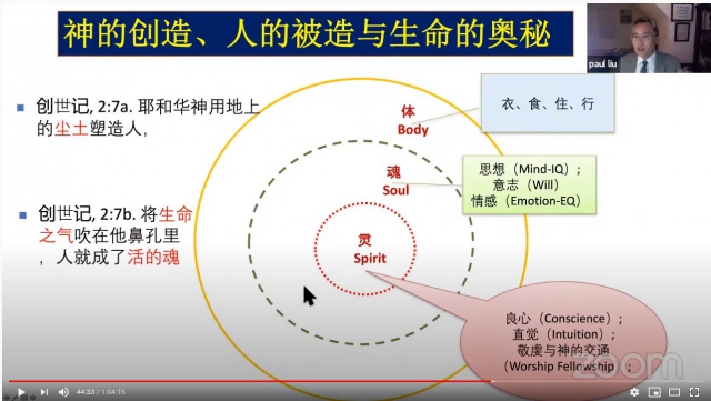 之后,北卡州立大学的刘教授给我们介绍,人身体的元素和土壤元素很相似,人是生于尘土,归于尘土。在圣经里记载,人是由尘土被造,然后神将生命之气吹在他鼻孔里,人就成了活的魂。然而,罪借着亚当进入人里面,人的灵就失去了功用。因着我们灵的死,我们的魂和心思也出了问题,人的心思开始变得黑暗、空虚、贪婪、诡诈等。甚至人的心思失去了管控,就如马可福音七章21—23节所提到的,这就是从里到外的被污染的光景。